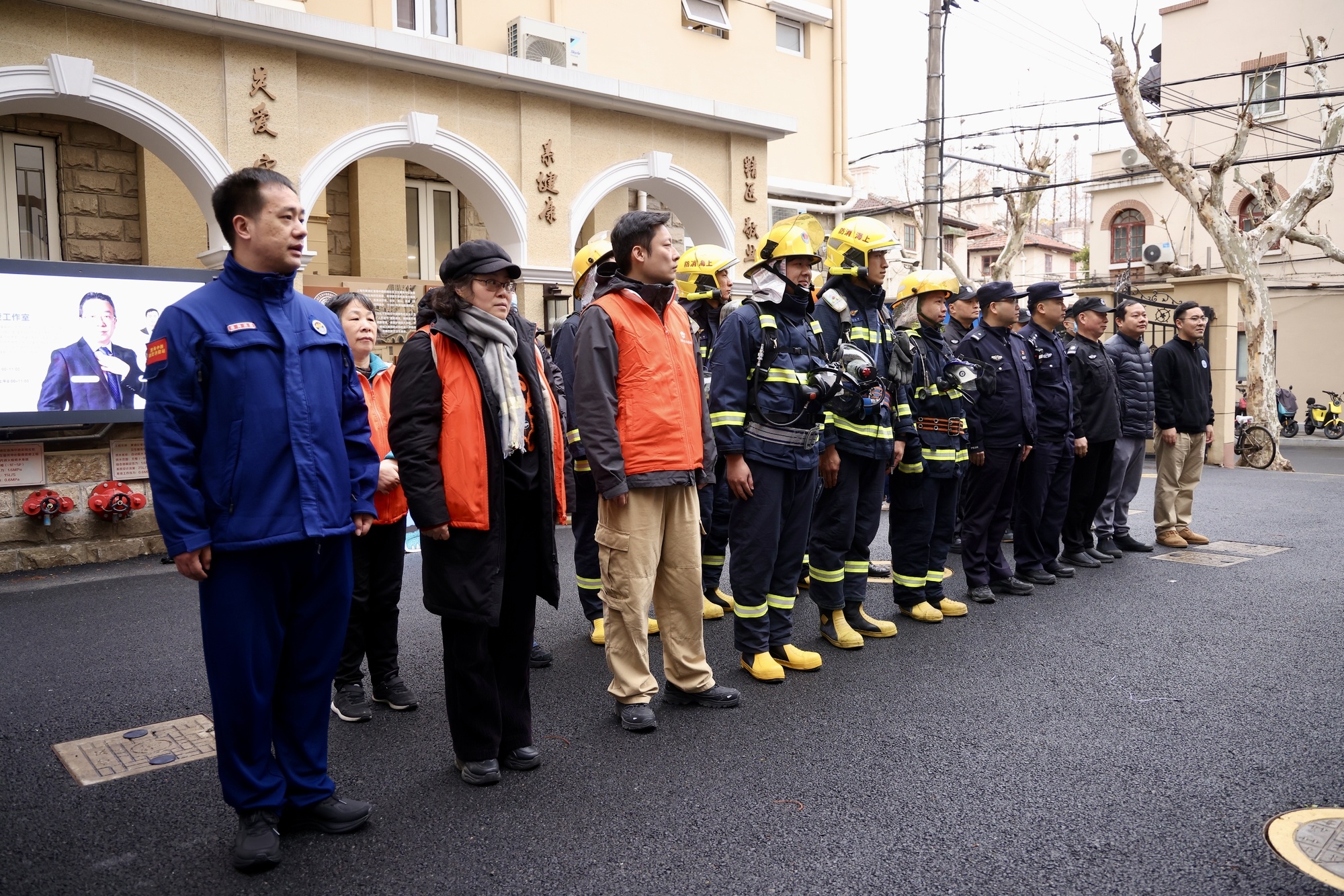 随着消防警笛声由远及近,嵩山消防救援站的专业力量抵达,现场处置进入协同升级阶段。同时,淮海中路派出所民警已依据联动预案,高效完成外围警戒圈设置与交通疏导,确保生命通道绝对畅通。与此同时,闻讯而至的居委社区力量迅速发挥作用,成为现场的“邻里纽带”与“温情后援”,引导疏散至安全集合点。社区医院快速建立起的临时救护点,也开始了对“伤员”的紧急处置。