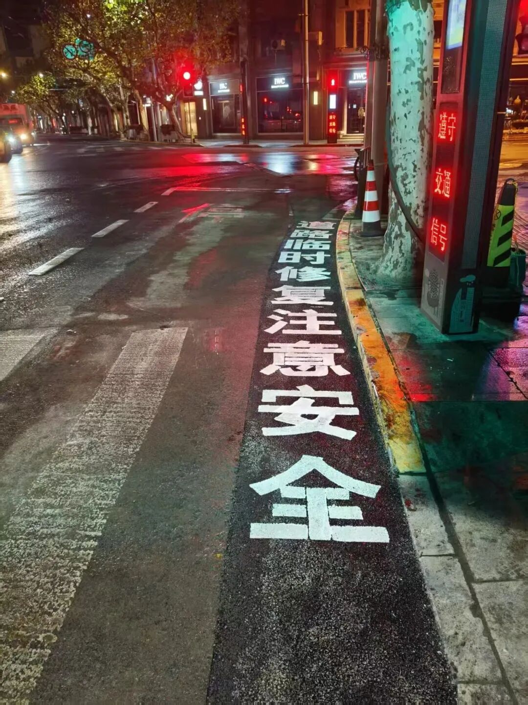 同时在初修路面清晰涂刷“道路临时修复,注意安全”提示语,用醒目的提醒守护来往车辆与行人的安全,让每一处临时施工都充满安全感。