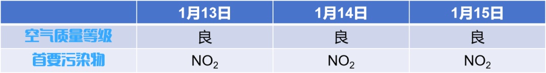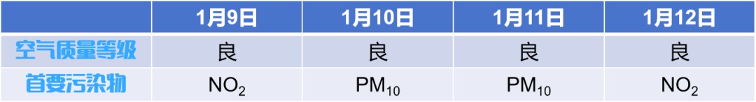 2026年1月9日—1月15日,徐汇区大气环境质量报告如下所示: