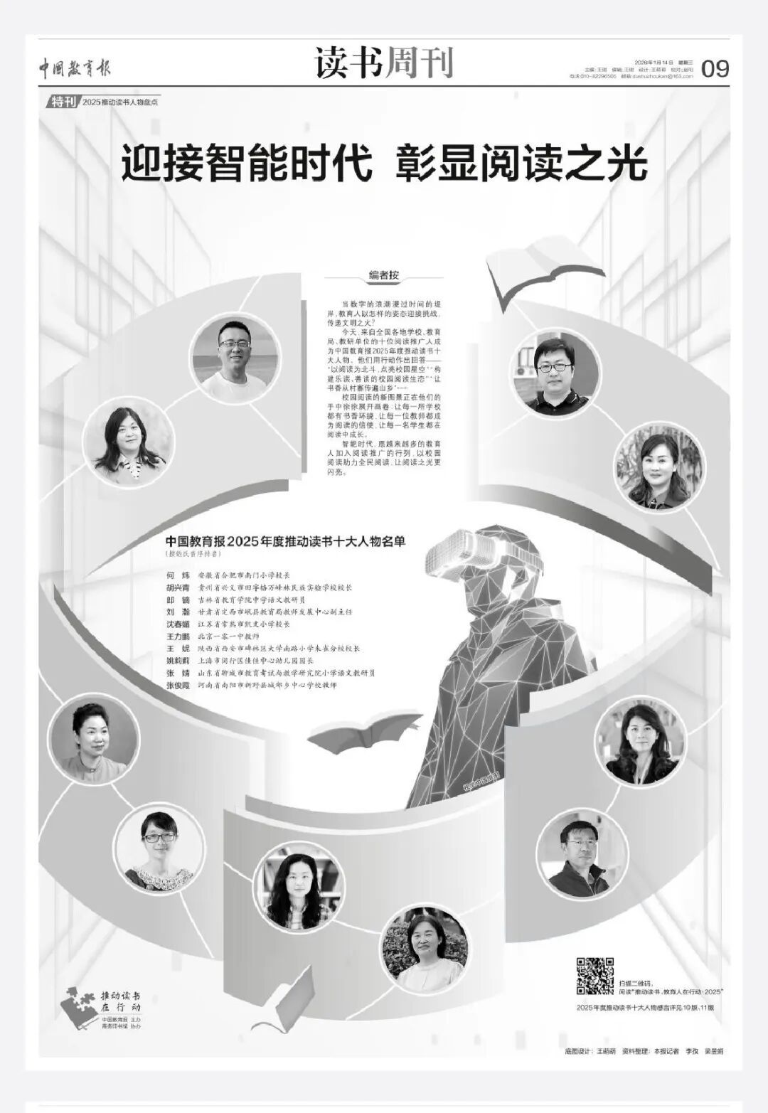 本届“推动读书十大人物”评选以“智能时代的校园阅读”为时代背景,聚焦教育工作者如何在技术加速迭代的环境中,以阅读为精神坐标,点亮校园星空,构建乐读、善读的校园阅读生态。入选者以长期而扎实的行动作出回应:“让书香在校园持续生长,让阅读成为教师与学生共同的精神底色。”