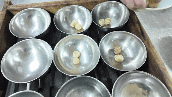 首先,把糯米煮熟后加入一定比例的糖和猪油,经过搅拌后待用。