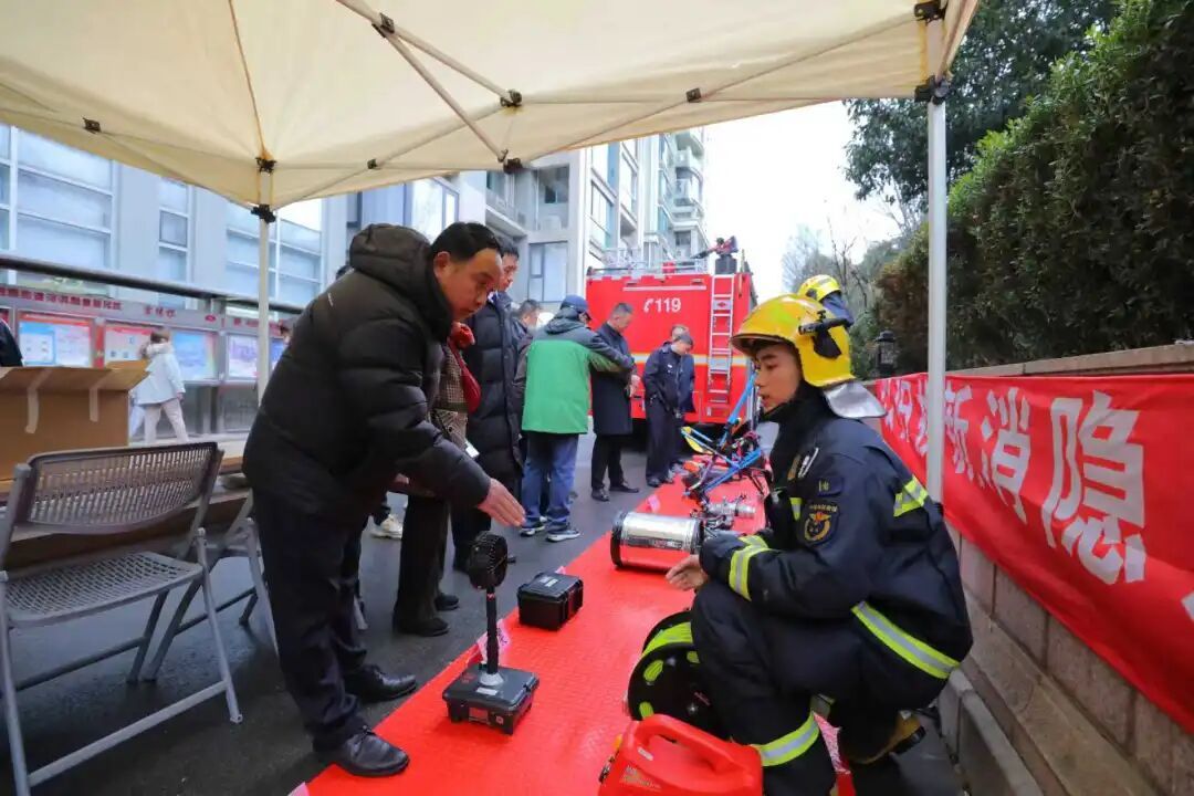 活动当日,在主会场天目西路街道河滨花园,区消防救援局设立了消防科普集市,重点讲解电动自行车违规停放充电、楼道堆物等突出隐患的危害,引导居民主动清理身边火灾隐患,现场还设有安全大转盘、套圈答题、油桶灭火等趣味活动,吸引了大量居民参与。