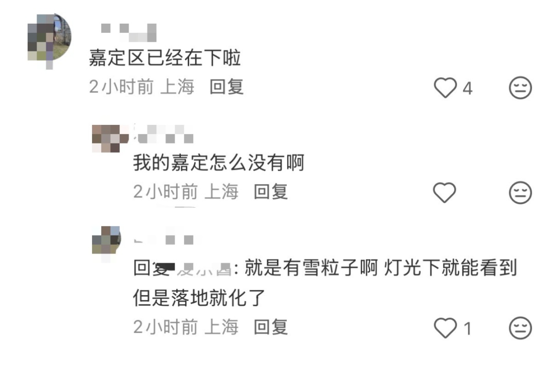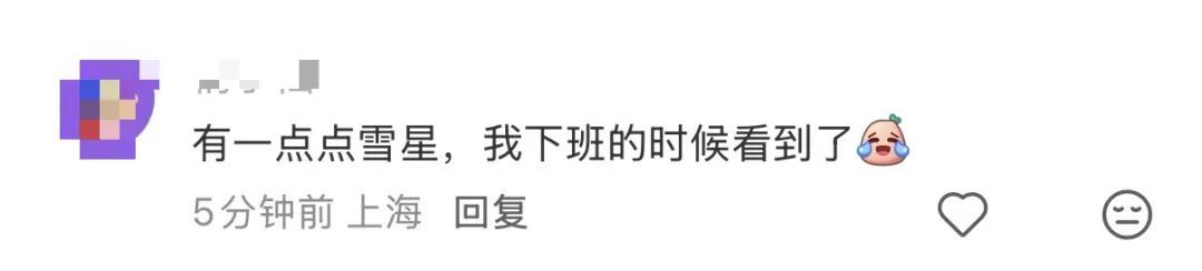 一觉醒来 上海人都在问: 昨夜上海下雪了吗? 有人回应:真的下雪啦! 昨天没看到的! 别着急! 今早的大雪,你看到了吗?! ❄❄❄ 不少上海人的朋友圈都沸腾了! 这回,上海人真的没有白等 真的不是“头皮雪”! 小编也拍到啦!原图直出! 不过也有一些地区的人表示 我怎么没看到雪啊? 如果你昨夜没看到雪 那今明两天还可以再蹲一蹲 今天(1月20日)天空阴沉,局部仍可能有短时小雨夹雪或小雪。气温全天低位运行,最低气温市区2℃,郊区0℃左右,最高气温仅4℃。 明天(1月21日)中午以前沿江沿海地区有零星小雪,夜里转为阴到多云。低温天气一直持续到周四,最高气温在3~5℃。其中周四雨雪止步,但早晨气温还要再刷新低!市区最低气温-1℃左右,有薄冰,郊区-6℃~-3℃,有冰冻或严重冰冻。周四白天风力明显减弱,周五开启晴好天气,气温小幅度攀升。 快来评论区留言! 晒出你镜头中的雪景! 编辑:张博宇 资料:新闻坊 *转载请注明来自上海宝山官方微信