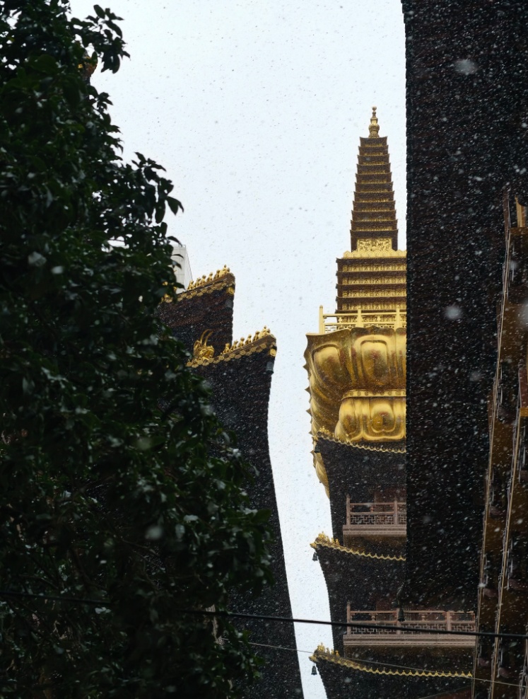 雪花缥缈中,静安寺金顶