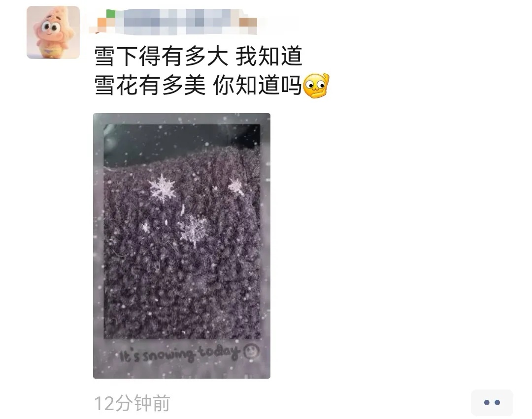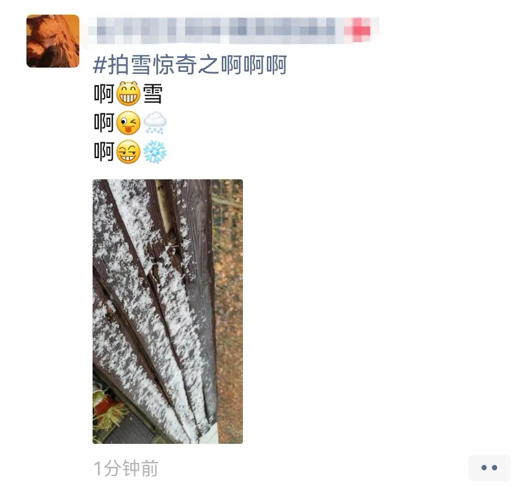 昨夜今晨,大家都在等待初雪,但凡有一点下雪的动静,大家就会忍不住发个朋友圈,朋友圈也一下子就热闹起来了。