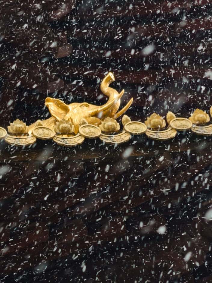 雪花缥缈中,静安寺金顶