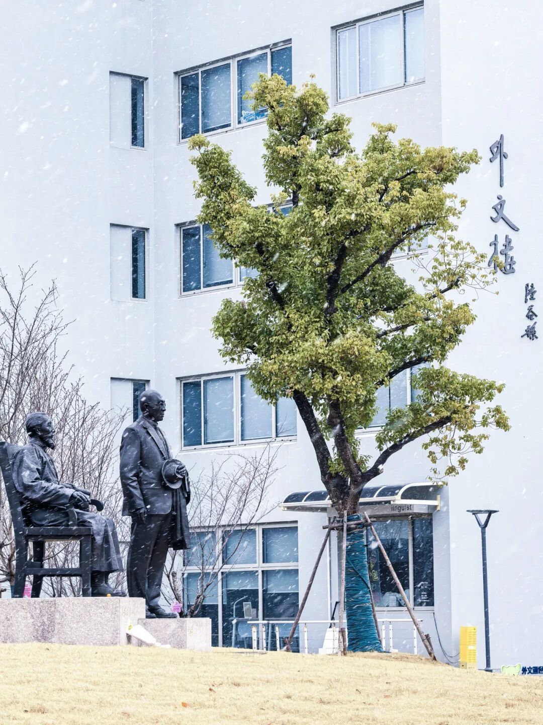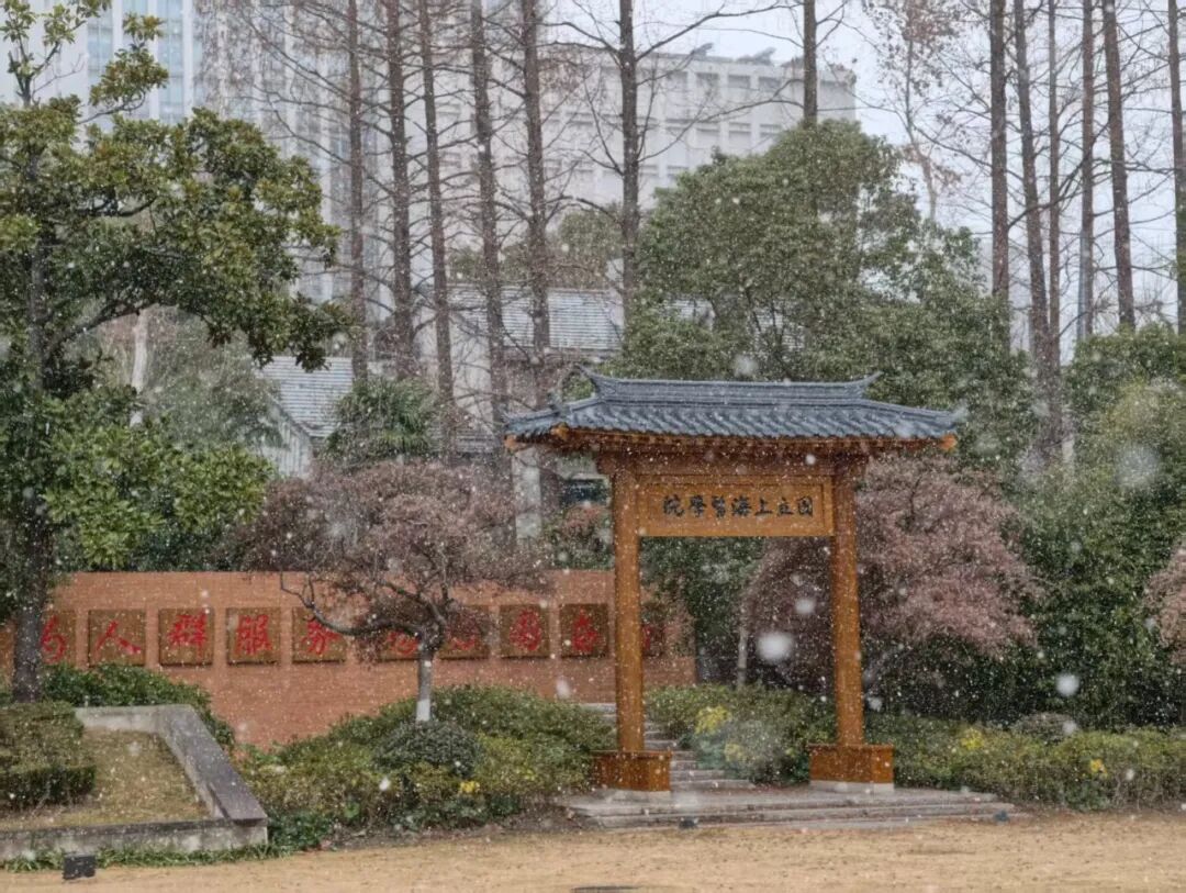 老校门巍然 石柱承雪