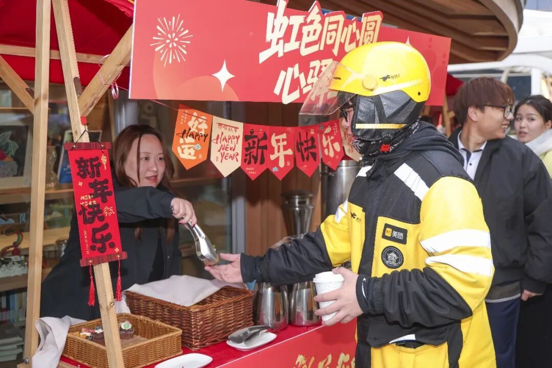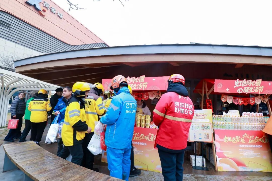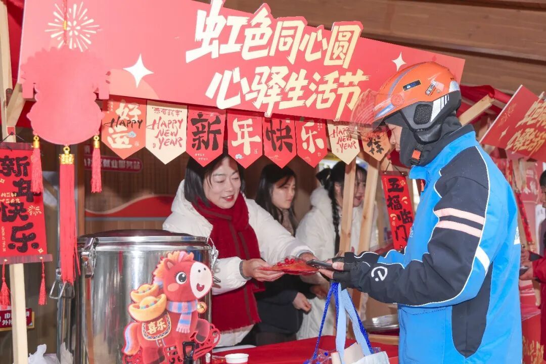 外场,以“虹色同心圆·心驿生活节”为主题的迎春特色摊位同样热闹。热粥姜茶驱寒、健康关爱护航、趣味互动暖心,人头攒动的温馨图景,将多方共建的暖意精准送达新就业群体心间。“我喝了腊八粥,还在心驿生活节这些摊位上参与了新春互动小游戏,赢取了不少实用小礼品。感谢党组织为我们提供这些实实在在的温暖!”外卖骑手小李笑着说。