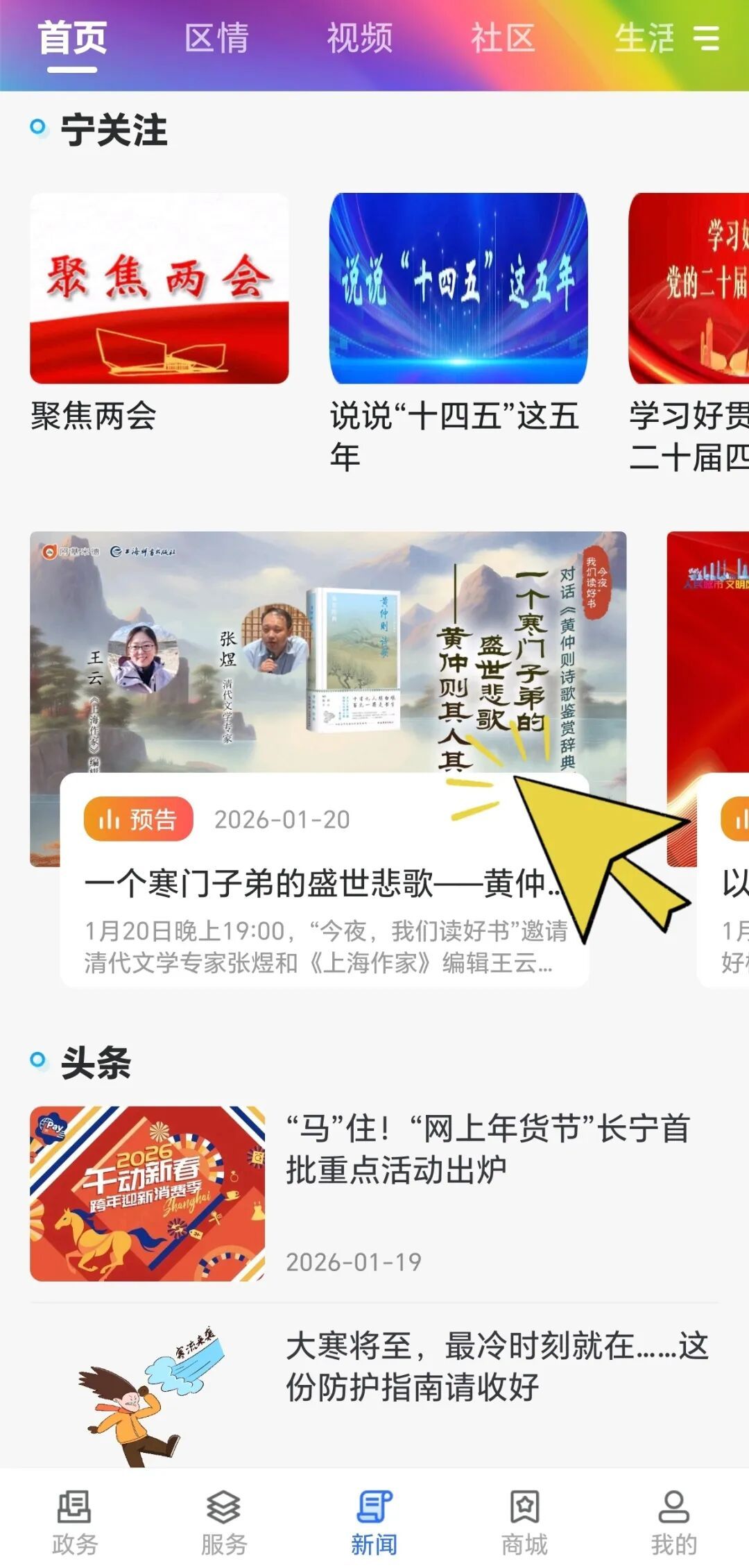 届时可从首页进入直播间