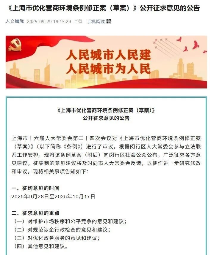 2025年9月,《上海市优化营商环境条例修正案(草案)》向社会公开征求意见。罗阳六居在接到镇人大办发布的征询任务后,居委会立即在每周例会上组织大家仔细研读,鼓励每个人畅谈想法与建议。王楠立刻上了心,“营商环境,听起来是‘高大上’的企业事,但其实也和每个人息息相关。”