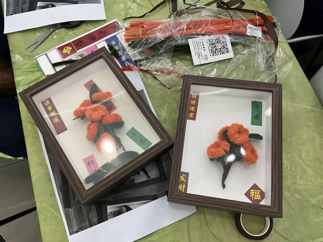 为让户外劳动者们轻松参与,主办方不仅准备了充足完备的DIY材料包,还特别邀请手工指导老师进行手把手教学。户外工人们放下日常劳作的疲惫,凝神专注于指尖创作,一根根普通的扭扭棒,在他们手中逐渐变成形态鲜活的“柿子”手作。每一次揉搓、每一次粘贴,都承载着他们对新岁的美好期盼,也凝聚着党建组织与共建单位的深切关怀。