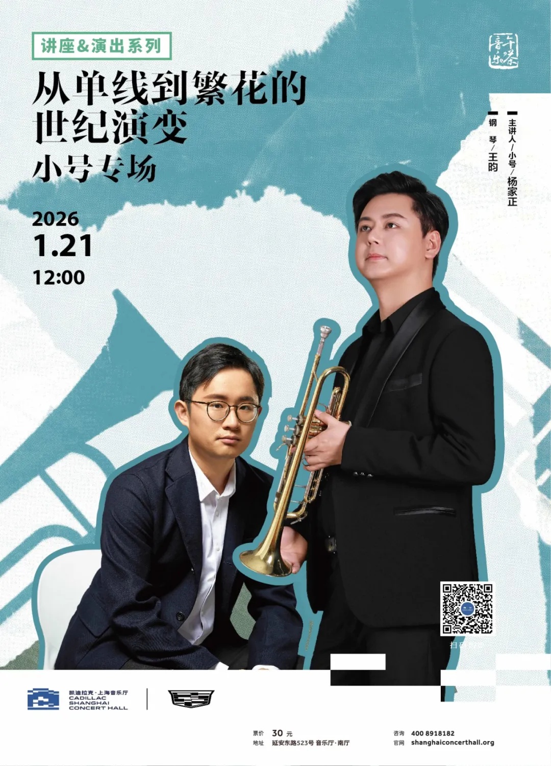 1月21日“音乐午茶”将直播讲座&演出系列的从单线到繁花的世纪演变——小号专场音乐会,欢迎线上的观众朋友们快来预约观看!