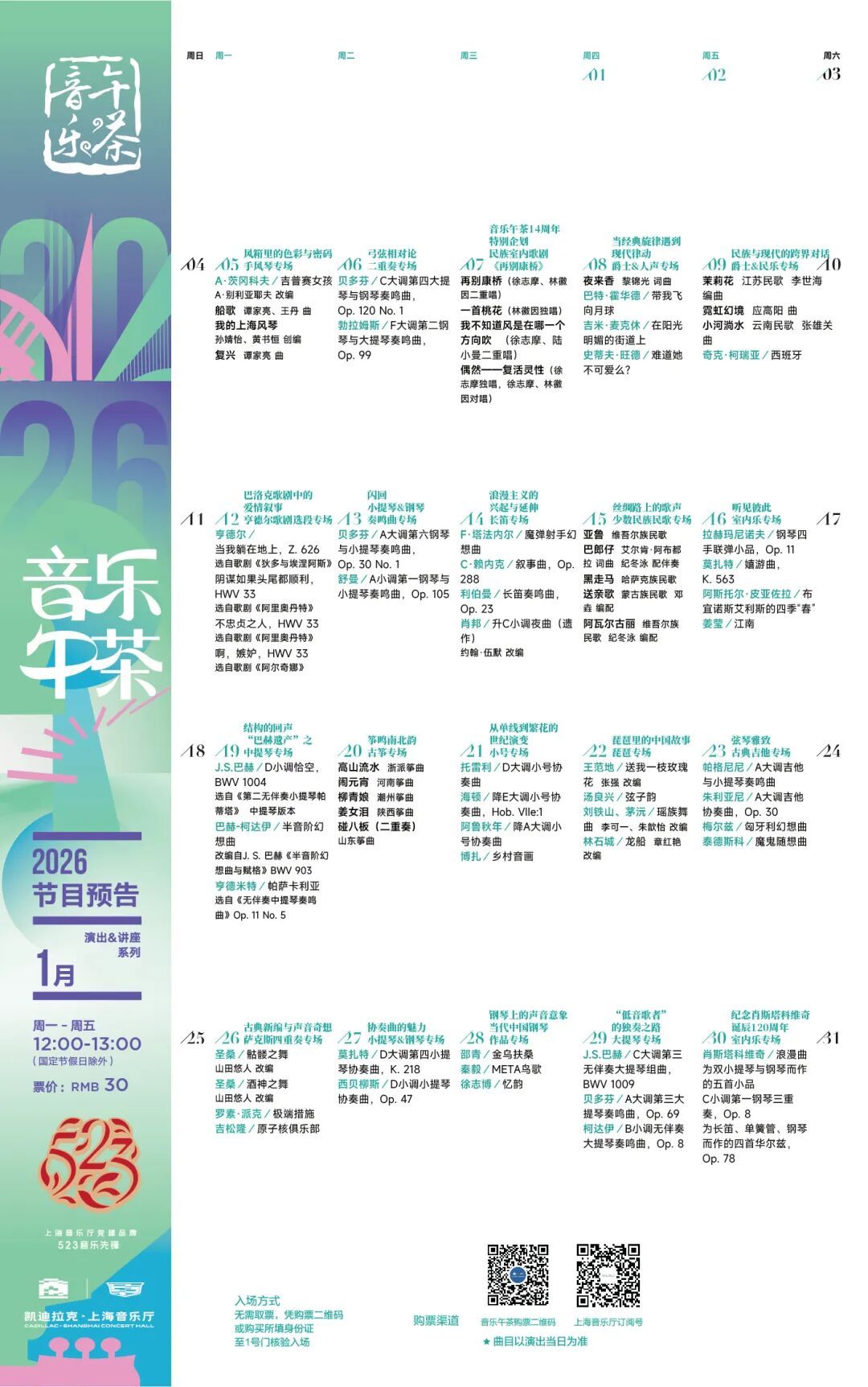 2026年1月7日“音乐午茶”迎来自己的十四周岁生日,也迈向了品牌的第二个十年征程,截止2025年12月底,该项目已成功举办了2600余场音乐会,9700余位艺术家在这里与大家见面,上演了16600多首作品,观演人数达40.5万人次。