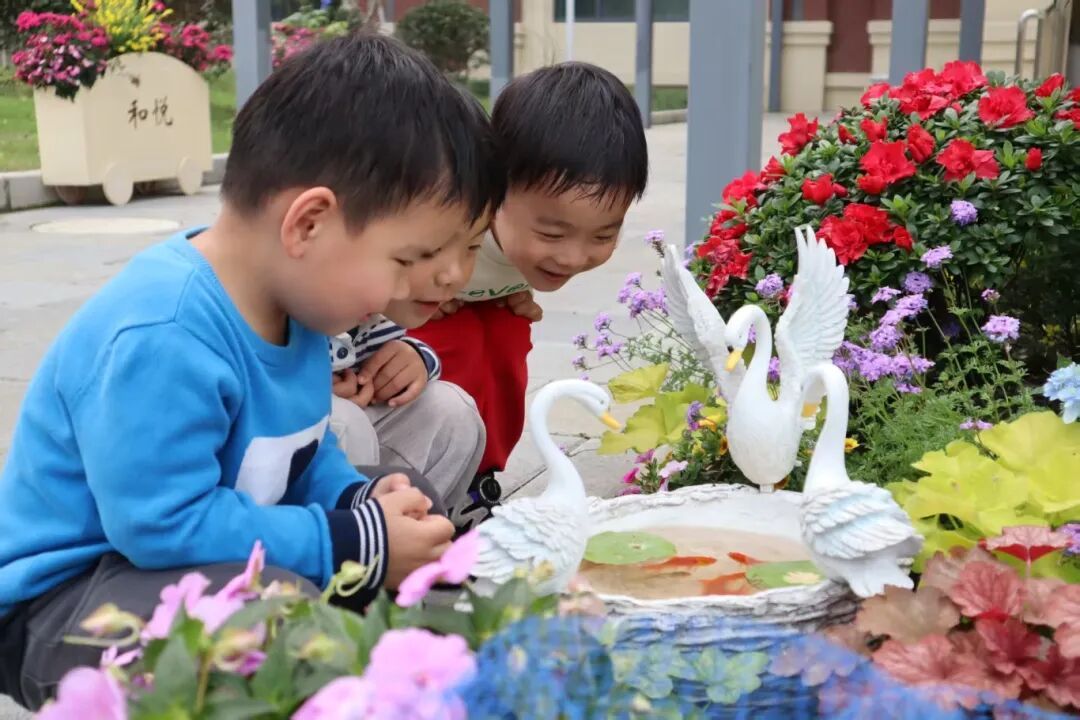 ▲宝贝们被幼儿园美丽的一角所吸引(明华幼儿园 王天赐摄)