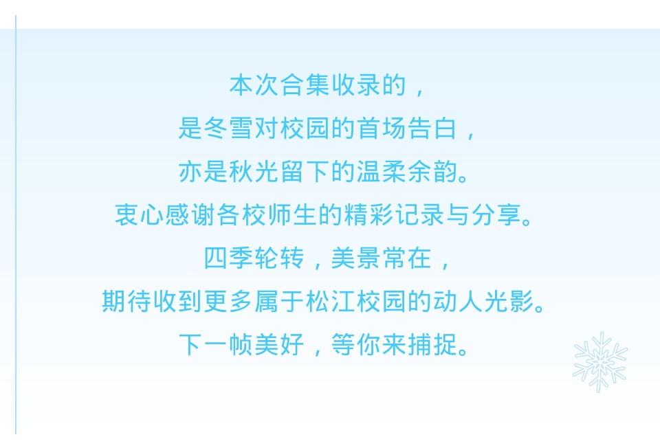 ▲雪落 “桃李天下”,校园文脉与冬雪共融(上外云间中学 曹韫藉摄)