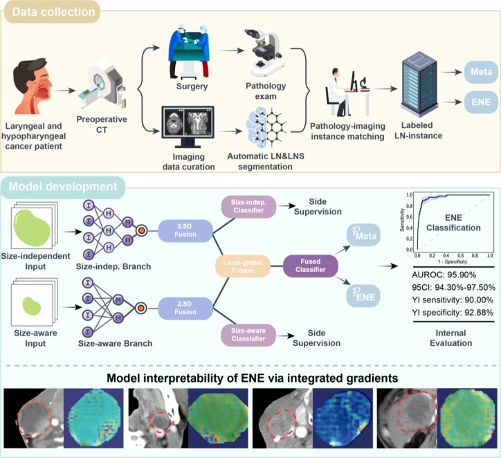 喉癌和下咽癌是头颈部常见的恶性肿瘤,全球每年新发病例超25万,死亡病例逾13万。颈淋巴结转移及淋巴结包膜外侵犯(ENE)是影响患者预后的关键因素,ENE阳性患者的5年生存率显著低于阴性患者。