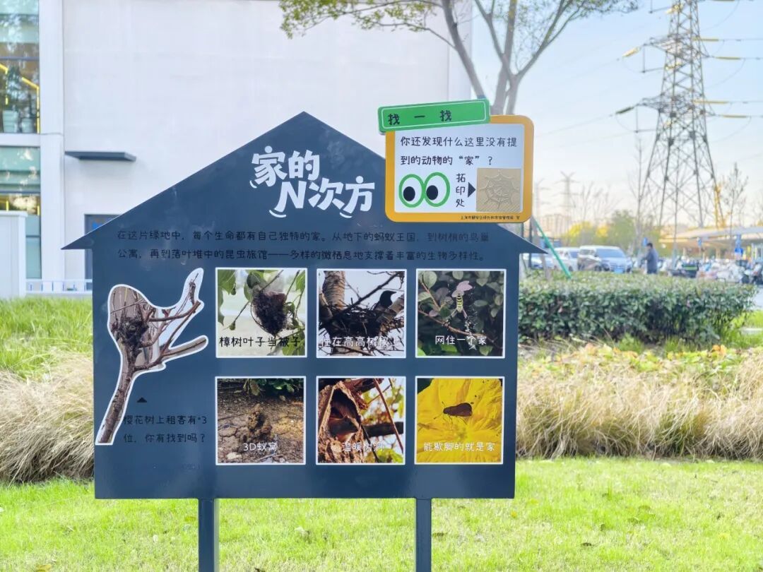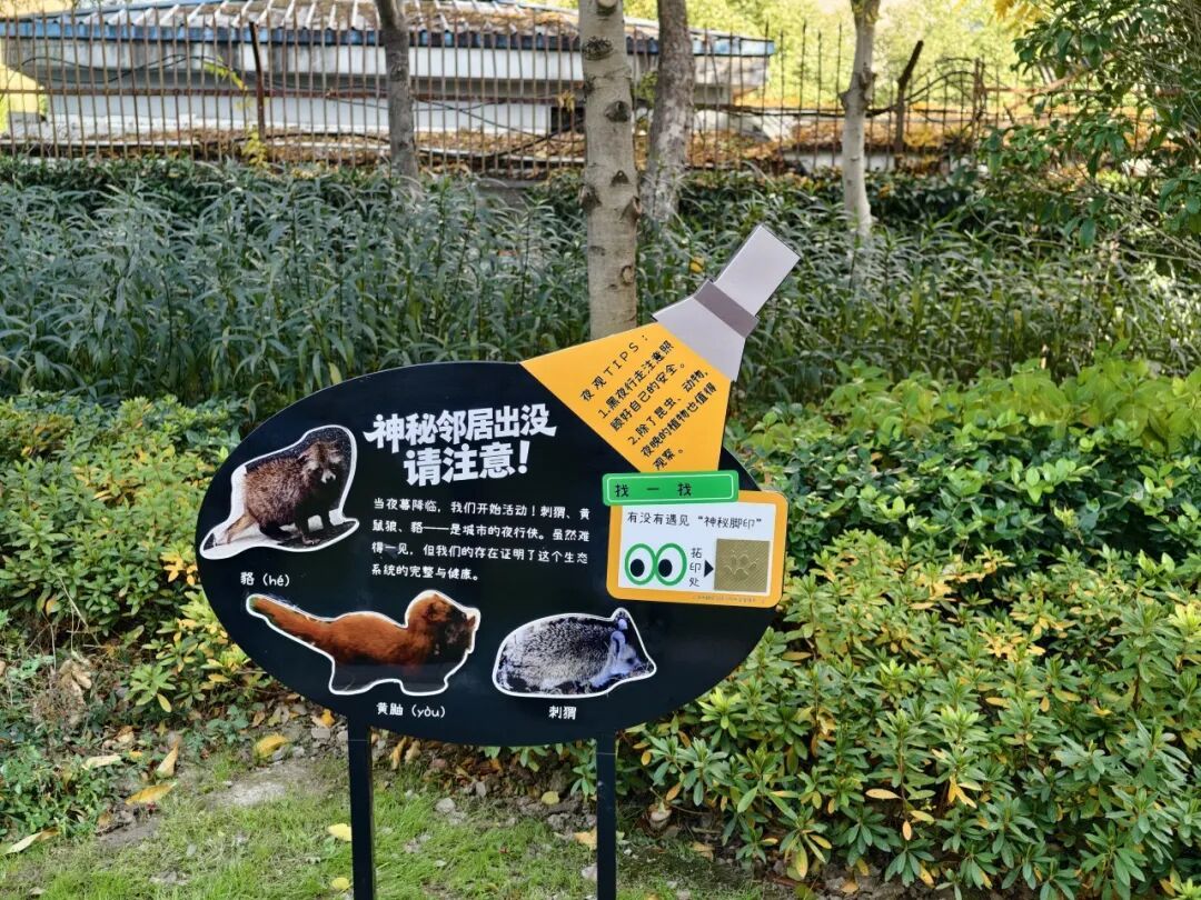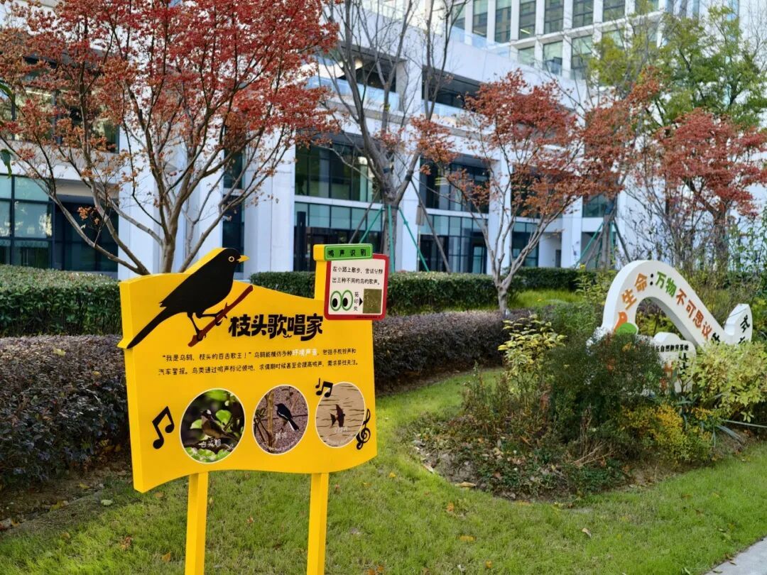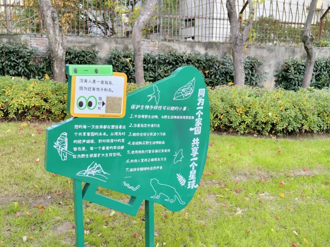 十块解说牌分别从乡土植物、鸟类、昆虫、栖息地、自然观察等不同角度出发,串联起一条贯穿花园的生物多样性探索路线。内容简明直观,兼具适度的互动设计,鼓励公众关注身边常见的野生动物,树立依法保护、科学保护的意识,推动形成全社会参与保护的良好氛围。