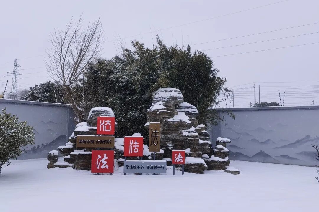 看庭除覆雪,纤尘俱净;窗棂伴蕊,崇法映墙。