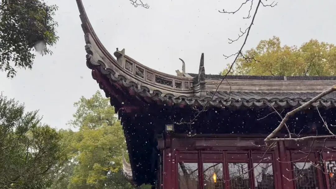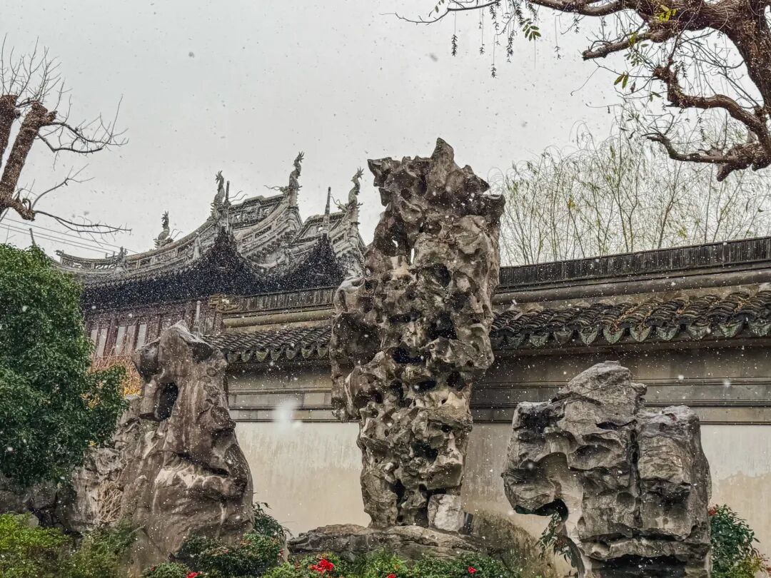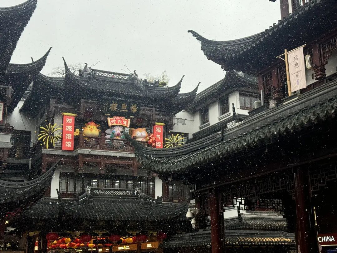 这场雪不仅为摩登都市披上了一层梦幻的银纱,更在市中心的豫园勾勒出一幅独属于江南的冬日诗意画卷。