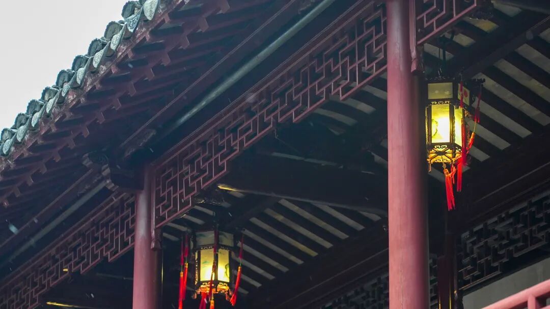 移步走进豫园内园,红墙的暖与白雪的清相互映衬,让素白景致多了几分温润,尽显古园千年韵味。