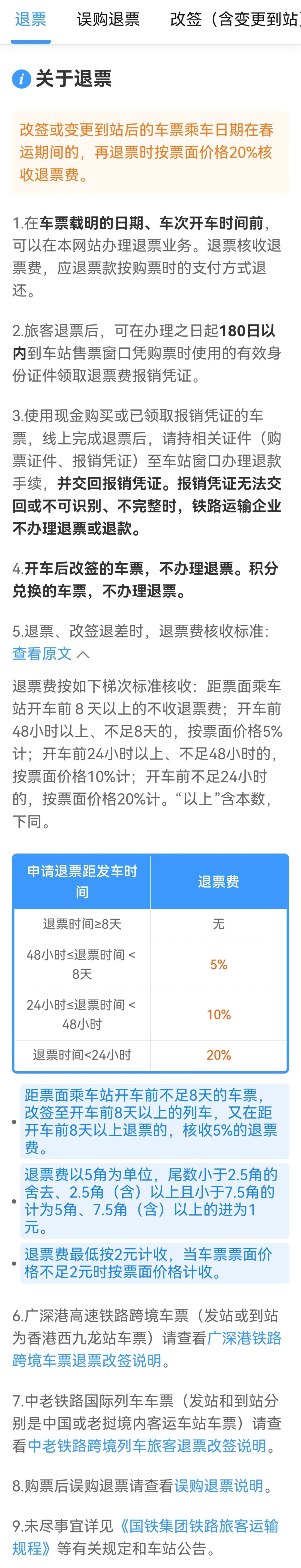 更多关于退票的详细规则