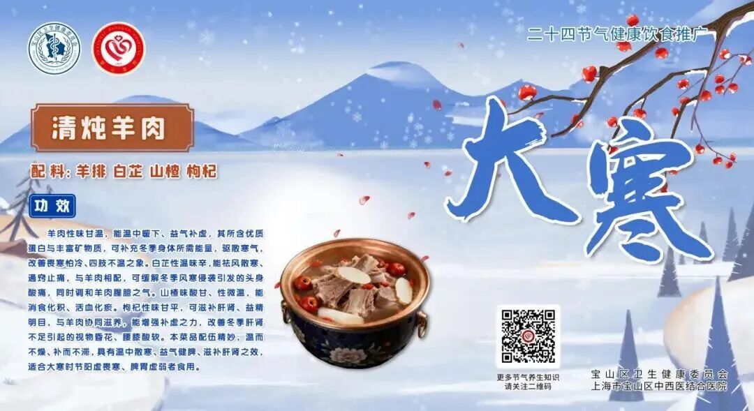为积极践行国家卫健委“二十四节气养生与健康”理念,深度响应宝山区卫健委“健康四季——二十四节气话健康”特色科普品牌,宝山区中西医结合医院依托中西医结合专业优势,组织资深医师与营养师团队,将节气养生智慧与现代营养学深度融合,推出二十四节气系列健康养生膳食。