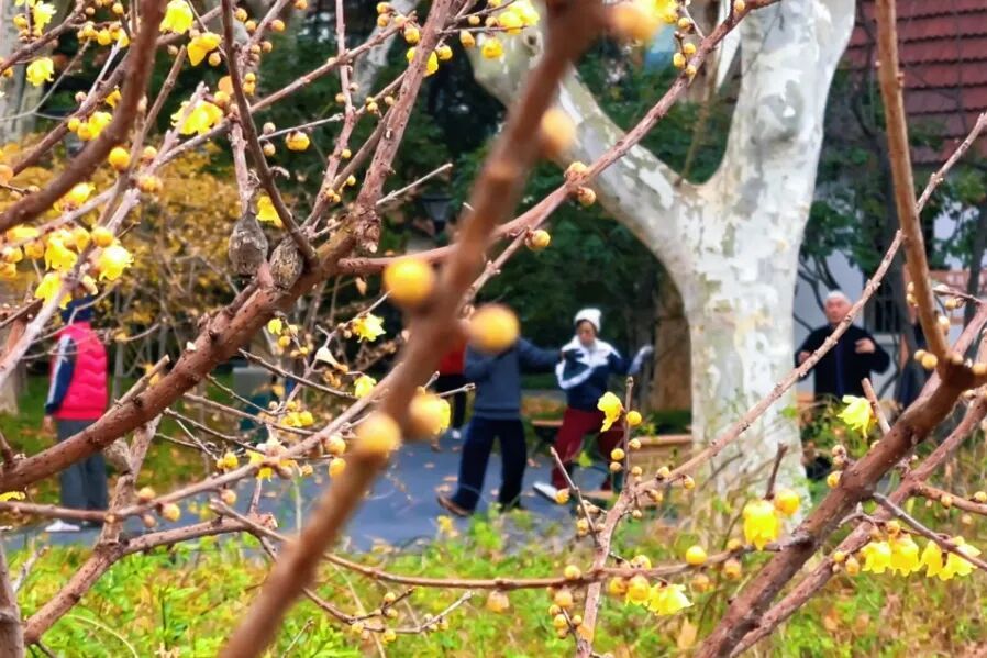 这几日申城降温明显,冬意愈浓,闸北公园内悄然浮动着缕缕清芬。园中的蜡梅已渐入佳境,正静静绽放在冬日枝头,吸引了不少市民循香而至。