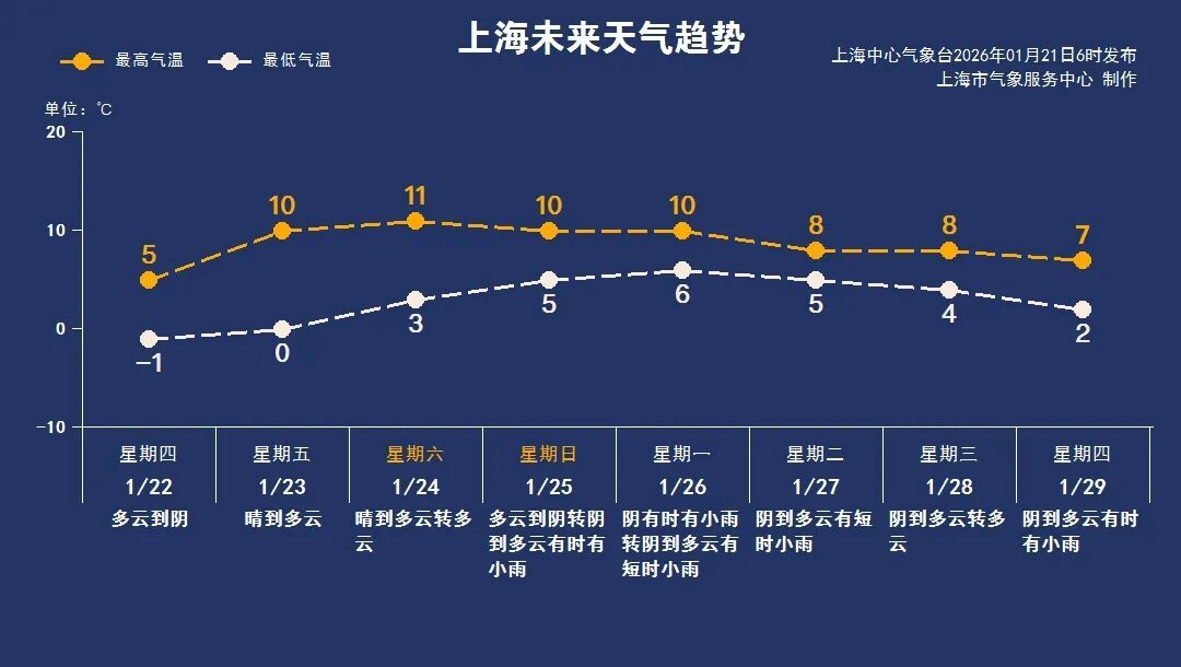 1月25日(周日):多云到阴转阴到多云有时有小雨,5~10℃