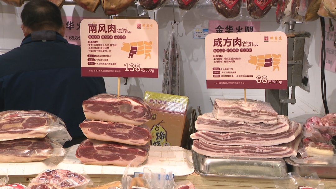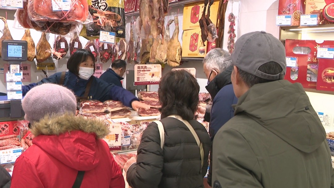 随着申城进入冬季,受寒潮影响,传统冬季养生食品进入销售旺季。而南京路步行街开展的“与市民一起过大年”的各种迎新促销活动也助推了各类销售。邵万生食品有限公司经理助理徐嘉栋告诉记者:“离过年还不到一个月的时间,我们门店也做了充足的准备,除了常规的南风肉、火腿和香肠以外,酱油肉、风鹅等这些产品也都准备好了。接下来2月5日南京路步行街还会有一个抖音的抢券活动,200抢300,也希望我们的消费者能抢到,开开心心过大年。”