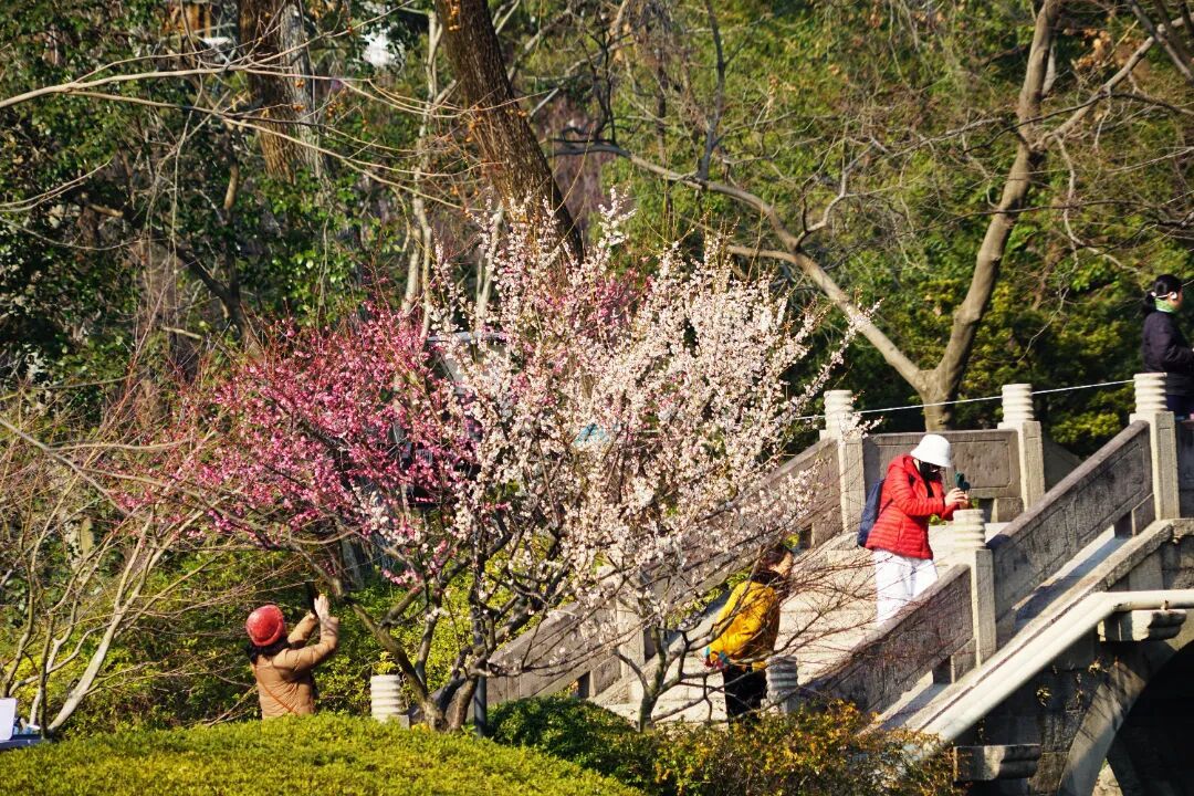 温馨提示,受本轮强冷空气影响,气温持续低位运行,近几日前往公园赏梅时请注意安全与保暖。