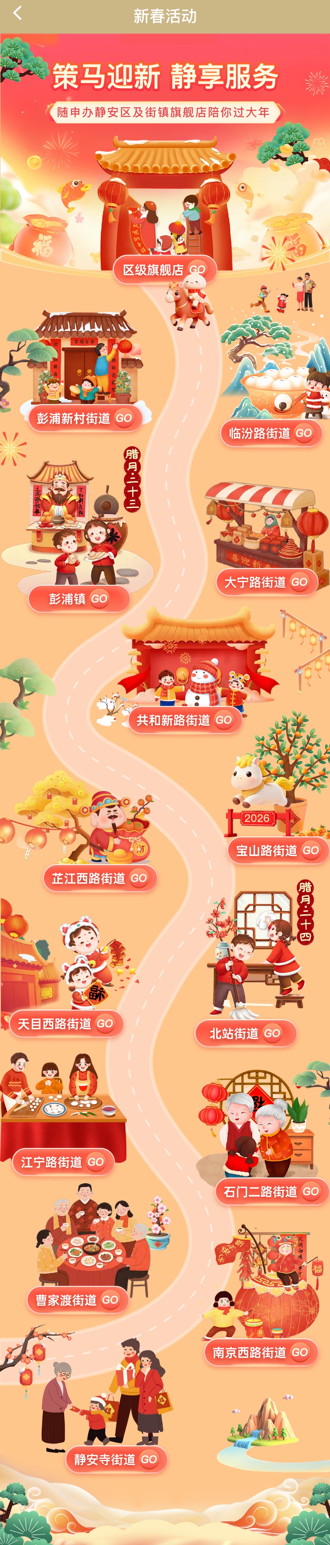 为喜迎2026马年的到来,随申办静安区及街镇旗舰店还将于2月在静安区线上线下举办各式各样丰富多彩的活动,关注随申办静安区旗舰店敬请期待吧~