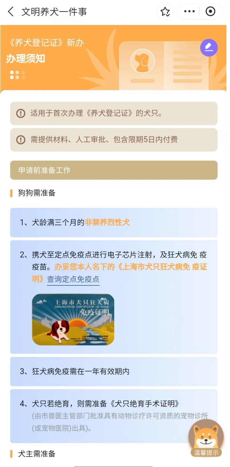 ✍️划重点:先免疫再办证!未取得免疫证或免疫过期,需先前往农委兽医部门指定机构,先预约免疫登记后进行免疫证办理或年审,办理后无需重复提交。