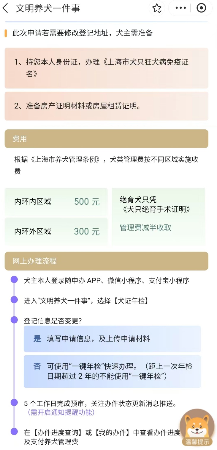 小申提示:预审通过后,需在5日内缴纳犬类管理费,逾期将自动驳回。