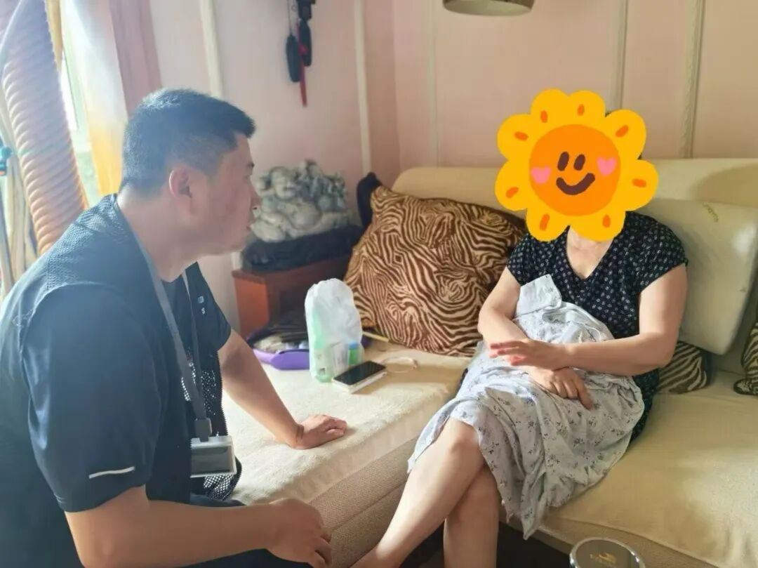 不到10分钟,中心的应急服务人员何师傅就到达了老人家中。这时周阿婆已经出现昏迷,面对突发情况,应急服务人员何师傅并不慌乱,一边帮年助老人恢复苏醒、测量老人血氧等生理指标,一边协助家属拨打120描述老人症状。