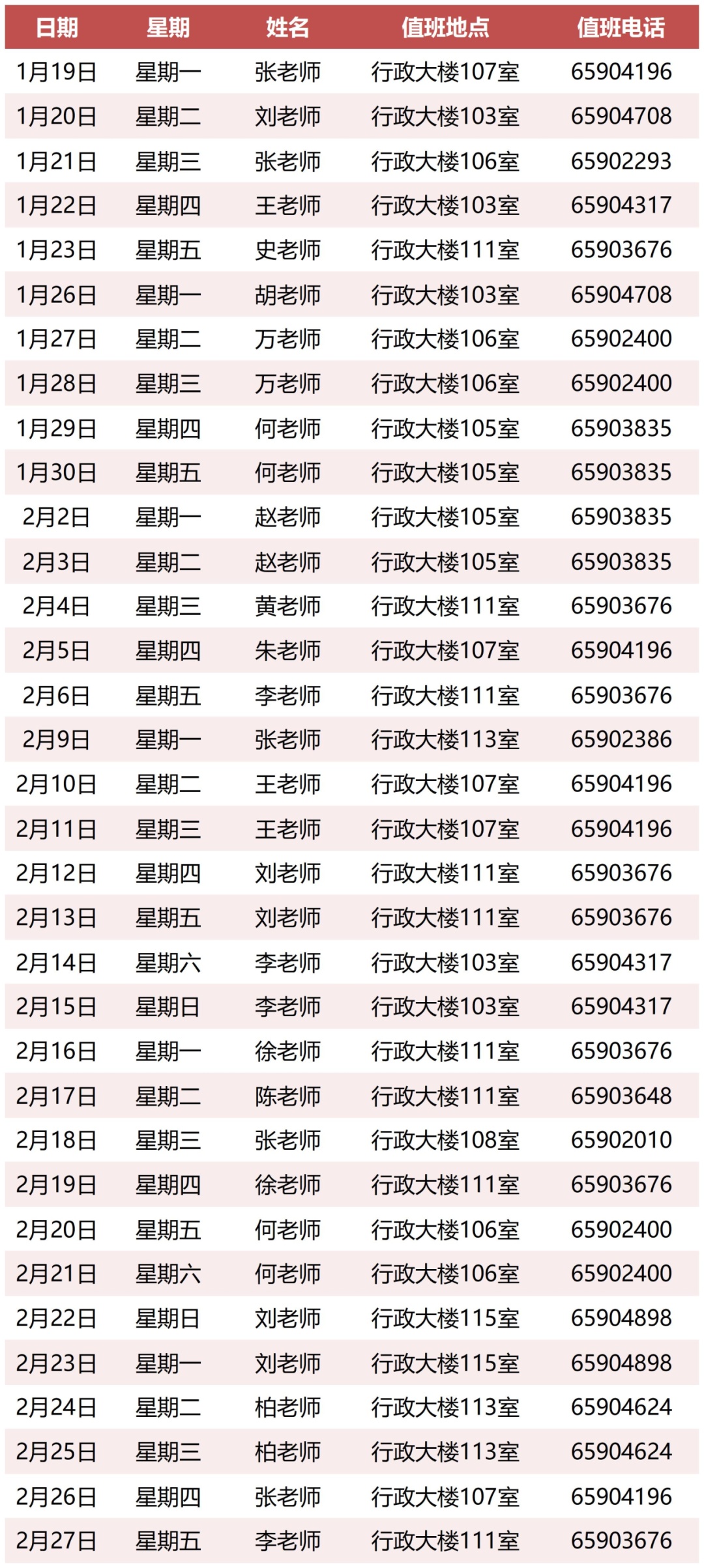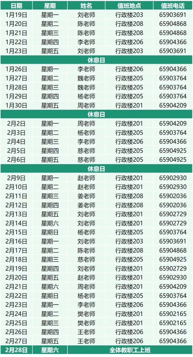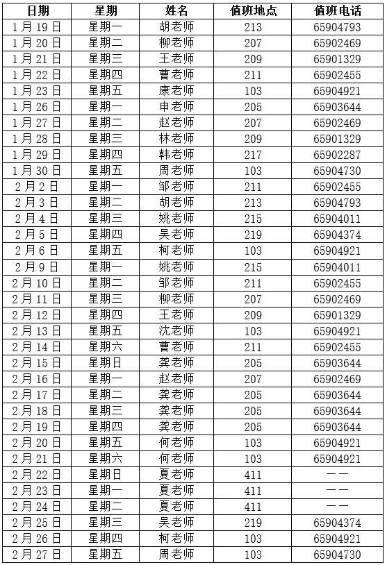 寒假值班表