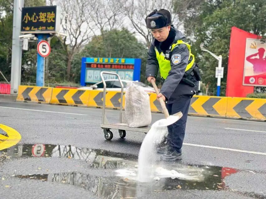 校园周边是雨雪冰冻天气防控的核心区域。1月20日7时许,雪花仍在飘落,大华新村派出所护校民警提前到岗到位,在学生入校前完成校园周边秩序维护及路面隐患排查。他们主动上前,牵着过马路的小学生稳步走过湿滑台阶,为独自撑伞的同学遮风挡雪、护送入校,用坚实的臂膀为孩子们撑起安全守护通道,这一幕幕温情画面,成为寒冬里最动人的风景。 位于上海“北大门”的洋桥检查站启动应急响应机制,对出入站100米内的路面进行撒盐作业,从源头预防路面结冰,提高车辆入站时的制动能力。同时,将道口查控卡点前移50米,摆放安全提示牌、临检告示牌,增派执勤警力提醒过往车辆降速慢行。为解决群众出行不便,检查站还创新在车辆引流、分流区域设置双向临时停泊区域,供过往车辆短时休整,并开设24小时暖心“服务区”,免费提供热水、暖气、应急医药箱等服务,用贴心举措让过往群众在寒冬中感受到公安温度。 风雪漫途,警暖人心。月浦派出所将关怀温暖送到群众心坎上,组织社区民警对辖区孤寡老人、独居高龄老人开展全覆盖走访慰问。民警们拎着大米、食用油等御寒物资,逐一敲开老人家门,细致检查家中取暖设备运行状况,排查用电安全隐患,坐在老人身边拉家常、解心忧,反复叮嘱老人“天寒注意保暖,出门谨慎慢行”,用实际行动为老人们驱散寒意。