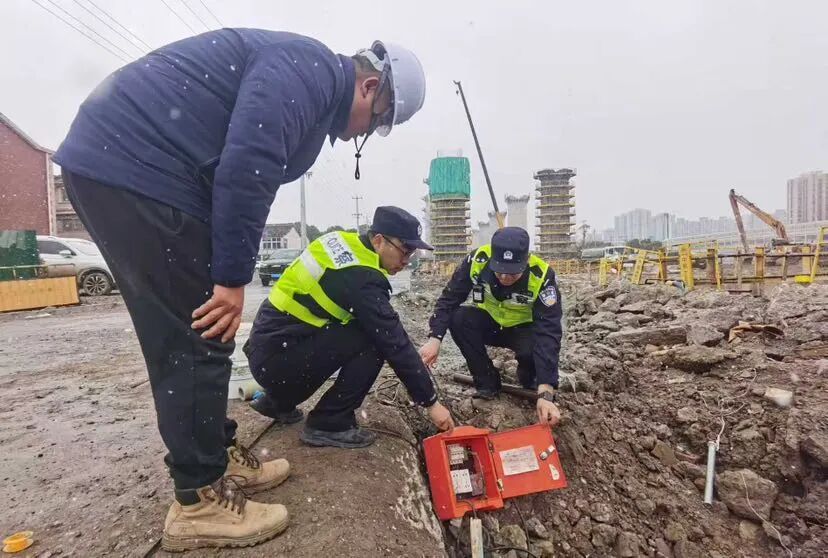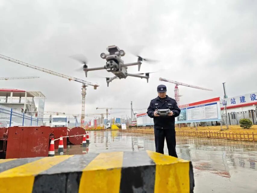 针对雨雪天气路面隐患排查难题,宝山警方创新防控模式,启用警用无人机开展空中巡查监测,凭借高空视角实现辖区道路、重点区域的全方位覆盖,结合地面警力巡查形成“空地联动”防控体系,精准锁定易积水、结冰等安全隐患点,为现场处置工作提供有力支撑。 科技手段成为平安工地建设的“硬核助力”。在高铁宝山站的在建工地,宝杨派出所民警创新启用警用无人机开展空中巡查调度,为工程建设添上“智慧翅膀”。民警通过实时传回的高清画面,精准掌握工地内部不同工段的运输车辆、工程车辆路线通行情况,通过对讲机远程动态调度疏导,有效避免车辆拥堵和交通事故。“以前工地交通疏导全靠人工跑,遇到特殊天气工作效率就会打折扣。”工地项目负责人介绍道。通过警用无人机与地面巡查联动的立体化警务模式,为大型工程建设按下“安全快进键”。 针对建筑工地防寒防冻薄弱环节,淞南派出所、罗南派出所分别对辖区工地开展专项安全检查。淞南派出所联合施工单位“工地管家”,深入14处在建项目现场,重点核查临时工棚防风加固、施工机械防冻措施及工人生活区用电安全情况,现场发现并督促整改脚手架未做防滑处理等隐患20余处,发放安全提示单300余份;罗南派出所社区民警则聚焦大型户外作业项目,对照安全责任清单细致排查脚手架连接处、塔吊基座等关键部位,现场整改消防通道堵塞隐患2处,同时协调项目方为工人配备防寒应急物资,并利用工间休息开展“班前安全微讲堂”,用10分钟时间讲解低温作业安全要点,切实提升工人安全防护意识。
