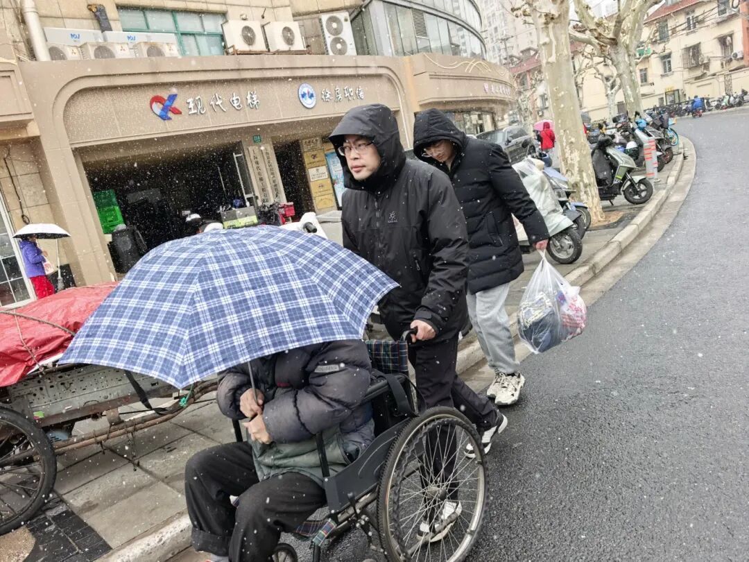 搬家当日恰逢2026年上海的第一场雪,工作人员准时上门,为老人添衣保暖,确保老人平安抵达养老机构。