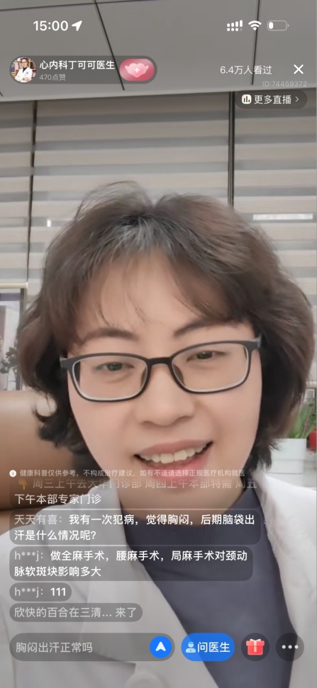 1月20日14:00,一场围绕“心”健康的云端对话圆满落幕。由同济大学附属同济医院、上海市崇明区新时代文明实践中心、上海市崇明区新的社会阶层人士联谊会、上海市崇明区向化镇人民政府主办,同济医院体检与健康管理医学中心及社工部、上海崇明石榴籽公益发展中心联合承办的《可可和您谈谈“心”——聊聊代谢性心血管疾病那些事》主题直播在线观看人数持续攀升,互动区气氛热烈,在寒冷的岁末为大家带来了一场既专业又温暖的心脏健康对话。 直播过程中,心血管内科副主任医师丁可可不仅带来了代谢性心血管疾病的专业防治知识,还针对观众提出的“颈动脉有斑块怎么办”“室早是否影响日常生活”等高频问题一一给出了清晰的专业指导,让大家带着疑问来、揣着答案走。同时结合临床经历分享了暖心细节:听到急性心肌梗死的患者在手术台上规律的鼾声会感到安心,因为这代表患者生命体征平稳,这个细腻的瞬间让大家感受到了医生对患者的深切关怀,引发不少观众共鸣。以前总觉得打鼾是问题,今天才明白,平稳的呼吸也是心脏健康的安静哨兵。直播中丁可可还推荐大家结合中医调理来维护心血管健康,让中西医结合的健康理念深入人心。 本次直播不仅是一场知识分享,更是一次温暖的健康陪伴。欢迎大家持续关注我们,后面“同益济世 健康天下”科普直播还会带来更多科普知识,继续联动专业医生,推出更多聚焦大众健康痛点的直播内容,让优质医疗资源以更便捷的方式触达每一位有需要的人。 图文|体检与健康管理医学中心 编辑|张鹰妮 责任编辑|谢壮丽