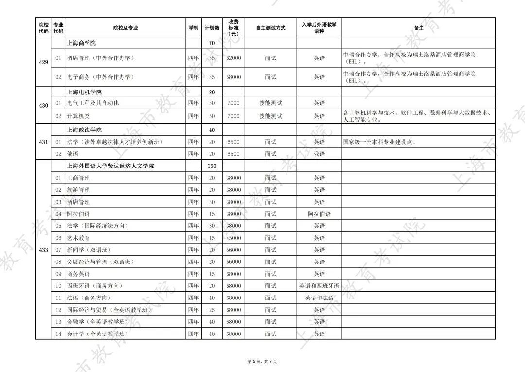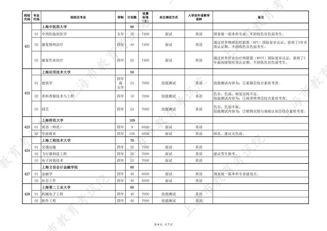 2026年上海市普通高校春季考试招生专业计划公布,详见↓