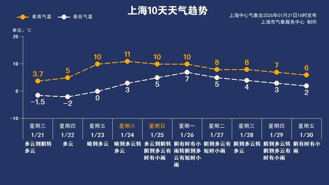 周五和周六白天晴到多云为主,周日云系有所增多,最高气温回升至10℃以上,本周末大家可以抓紧时间洗晒。周日夜间到下周,本市阴阴雨雨的天气增多,气温降至10℃以内,体感潮湿阴冷。