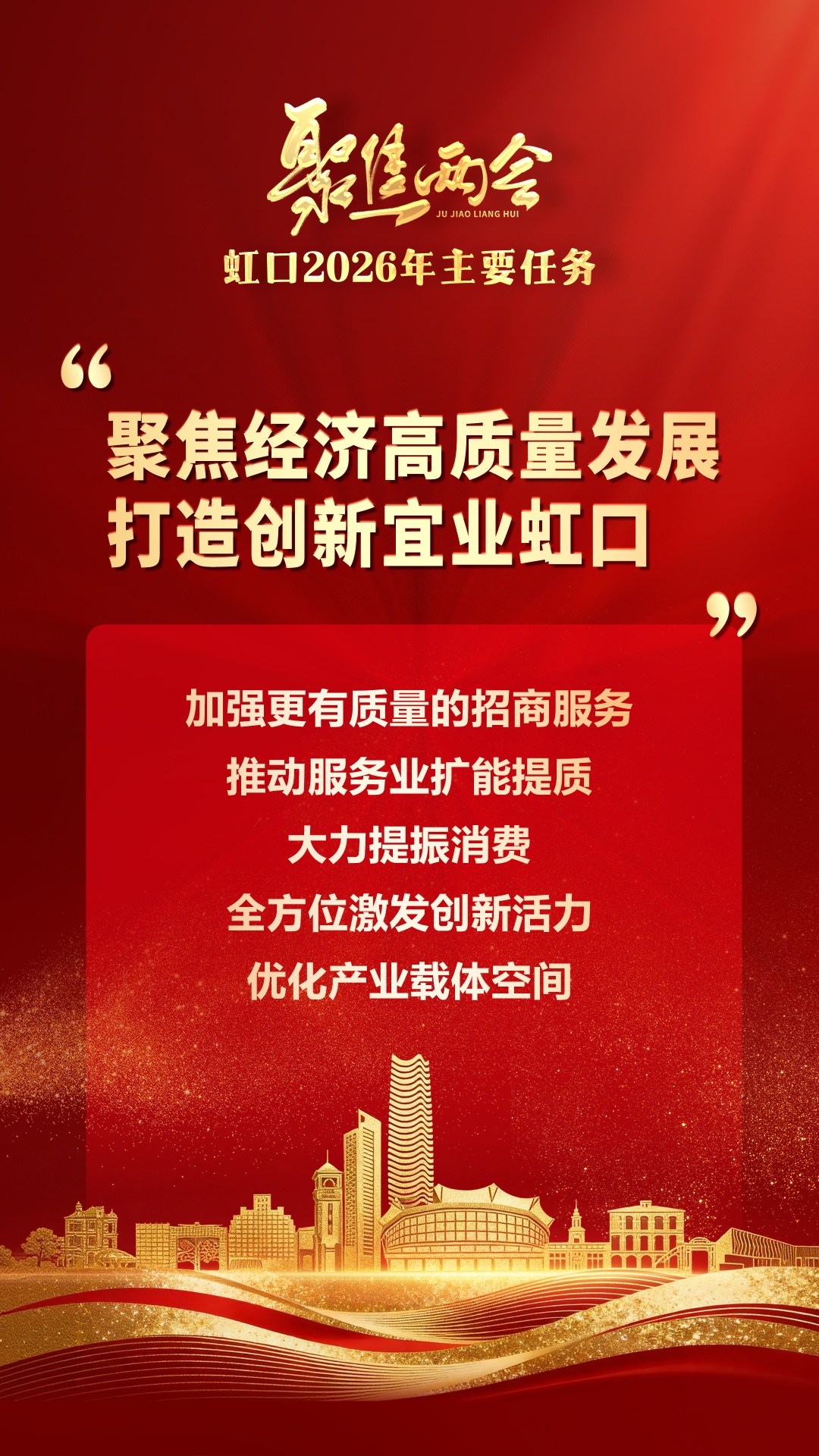 1月20日上午,虹口区第十七届人民代表大会第九次会议在区工人文化宫开幕,虹口区代理区长蒋蕊作政府工作报告。虹口区2026年发展有哪些重点?一组关键词带你读懂报告规划↓