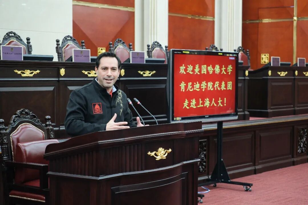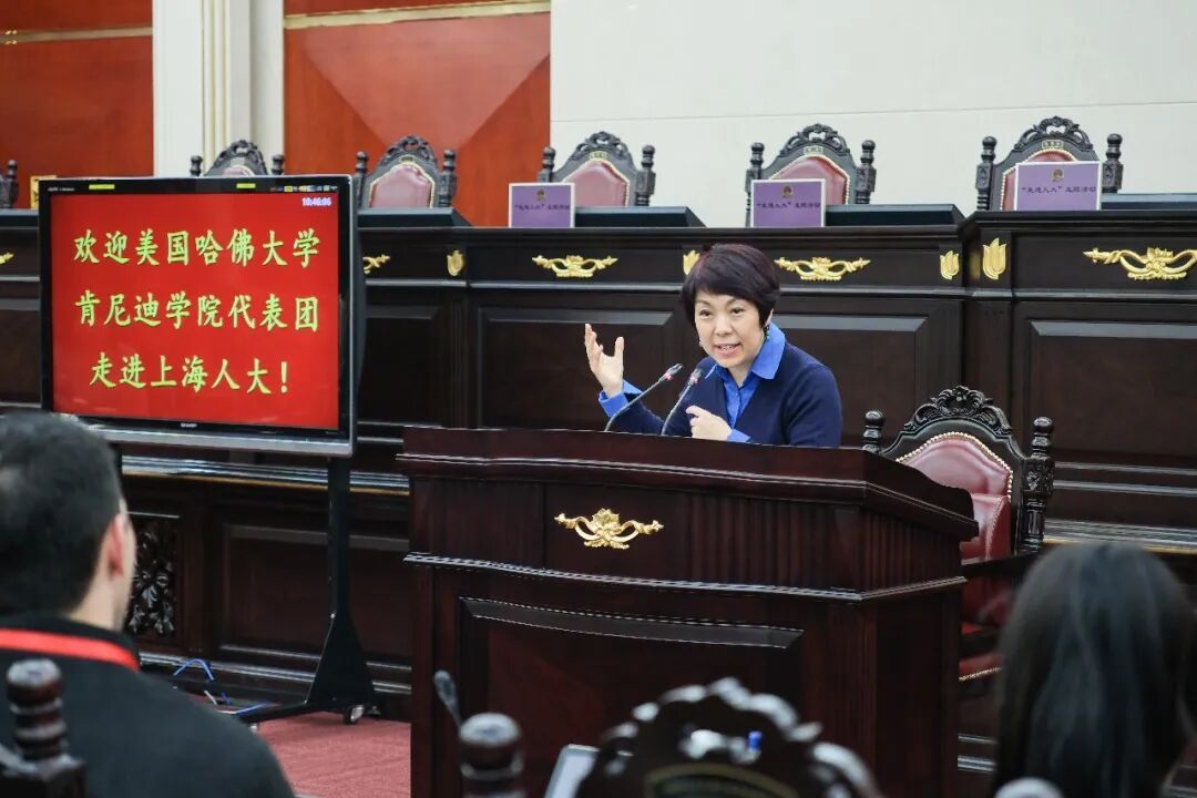 昨天(1月20日),美国哈佛大学肯尼迪政府学院代表团一行60多人来到上海市人大常委会会议厅。市人大常委会副主任、市友协会长陈靖出席活动并与代表团交流。市人大外事委主任委员黄红主持活动,市友协副会长傅继红、市人大外事委副主任委员费俭,市人大代表胡晓丽等参加活动。这是继去年1月哈佛大学肯尼迪政府学院研究生团来访后,该学院师生再次“走进人大”。