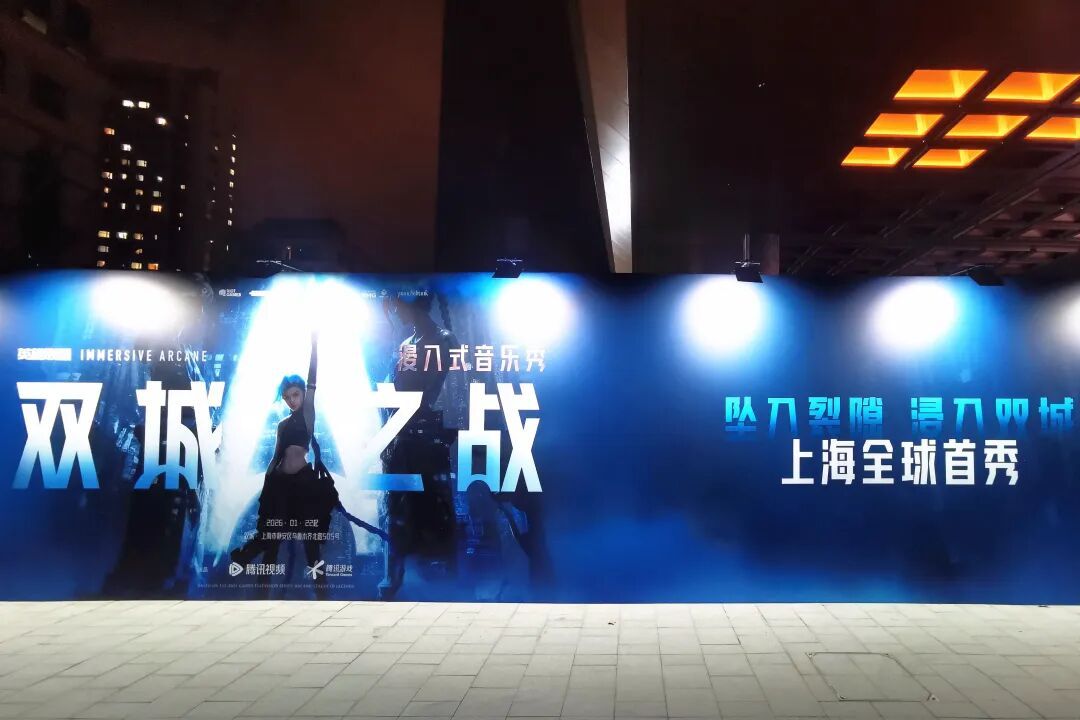 今天晚上(1月21日),记者在位于上海宾馆辅楼的演出场地看到,巨幅海报围挡瞬时点燃走入《双城之战》中秩序与混沌交织的奇幻世界的“热情”,想要“第一时间”开启“打破边界、亲身走进”的全新体验。