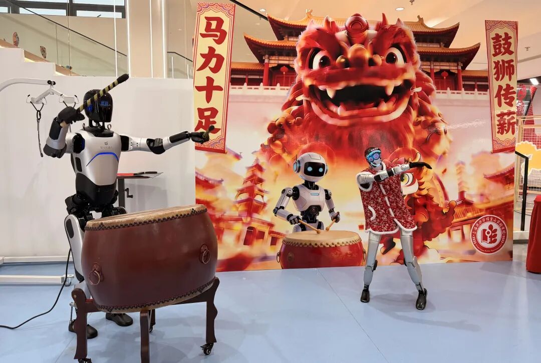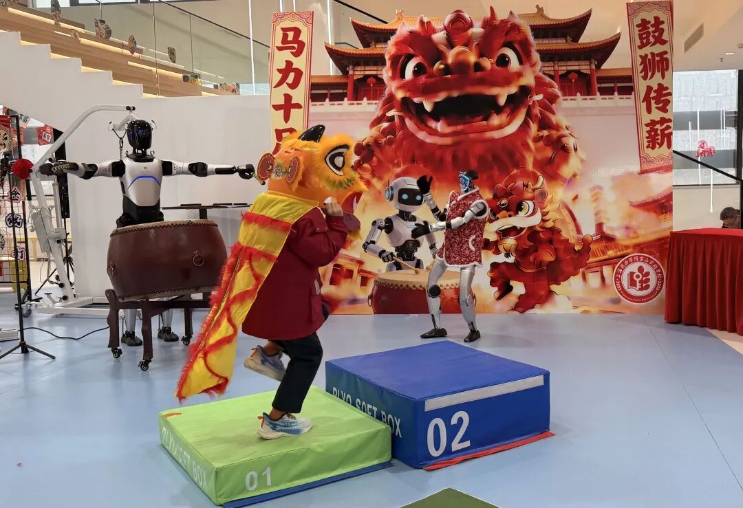 “准备好了吗?3、2、1,开始!”上午,校园里锣鼓声与欢笑声交织,一场别开生面的新春庙会正在火热进行。在体育评价点,学生们手执彩狮头,跟随机器人敲击的鼓点节奏,跨越障碍、走独木桥,完成舞狮动作。