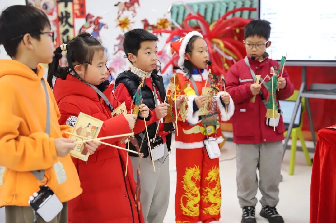 本次表现性游园评价活动以“非遗迎春”为主线,将语文、数学、英语、音乐等7门学科的知识,融入办年货、唱京韵、贴福字等年俗场景。学生手持“集福卡”穿梭各摊位,在完成学科任务的同时,也亲身感受传统文化的魅力和AI科技的创新力。