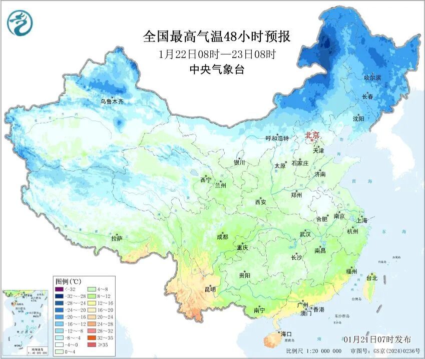 全市最低气温在-4℃~-1℃之间