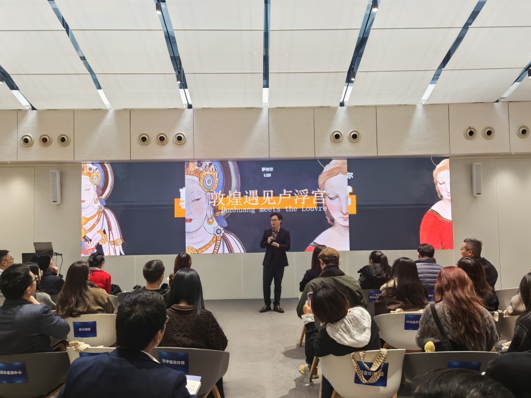 敦煌文化守望者罗依尔围绕“敦煌遇见卢浮宫”主题,以幽默通俗的语言将敦煌壁画与卢浮宫名画并置解读,讲述东西方艺术,让大家在欢笑中感受莫高窟飞天的飘逸与蒙娜丽莎的神秘,体会不同文明之间的共通与共鸣。罗依尔表示,自己是一个土生土长的虹口人,看着虹口成长。他说:“我接触文化事业后,感受到虹口是一个文化氛围特别浓厚的地方。现在有很多企业愿意躬身入局,做一些艺术文化相关的内容,文化产业生态特别好。”