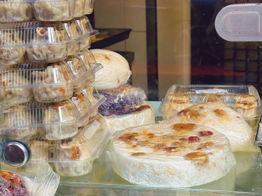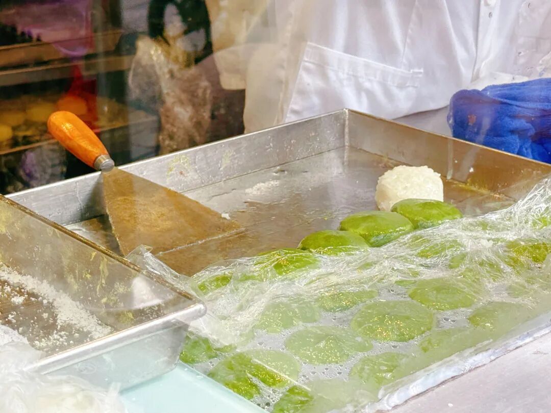 沈大成的窗口内陈列着各式各样的糕团,散发着诱人的香气,吃了咸的,总要来点甜的~沈大成的糕团,也是上海人的年货优选。