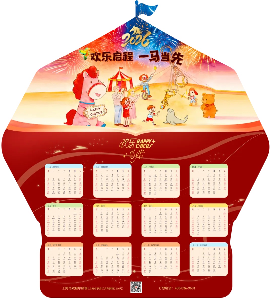 即日起至2月10日,凡购买2月17日至2月23日春节演出场次门票,单笔订单满500元,即可于观演当天凭购票订单,在中剧场现场领取“欢乐马戏限量挂历”一份或新春明信片一套(数量有限,先到先得)。把喜庆祥和的马戏年味带回家,为新年添彩!